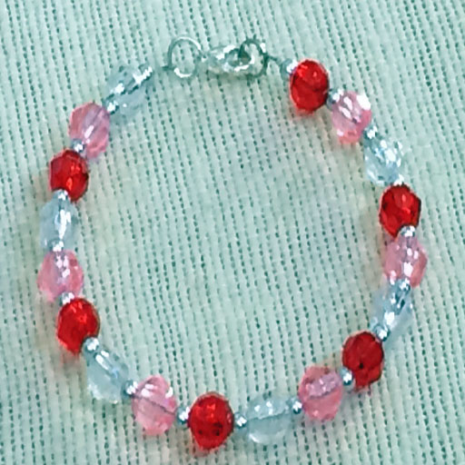 Product Description Bracelet made with 6mm acrylic pink, clear, and red beads. Perfect for your Valentine