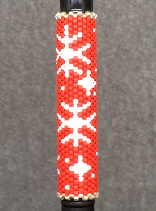 A hand beaded G2 Pilot pen with snowflakes. Made with 11/0 delica beads in various colors. More colors coming soon. Ink is replaceable so you never have to throw away this pen! Pattern is by Carolyn Degroff and beaded by Angie Ryman