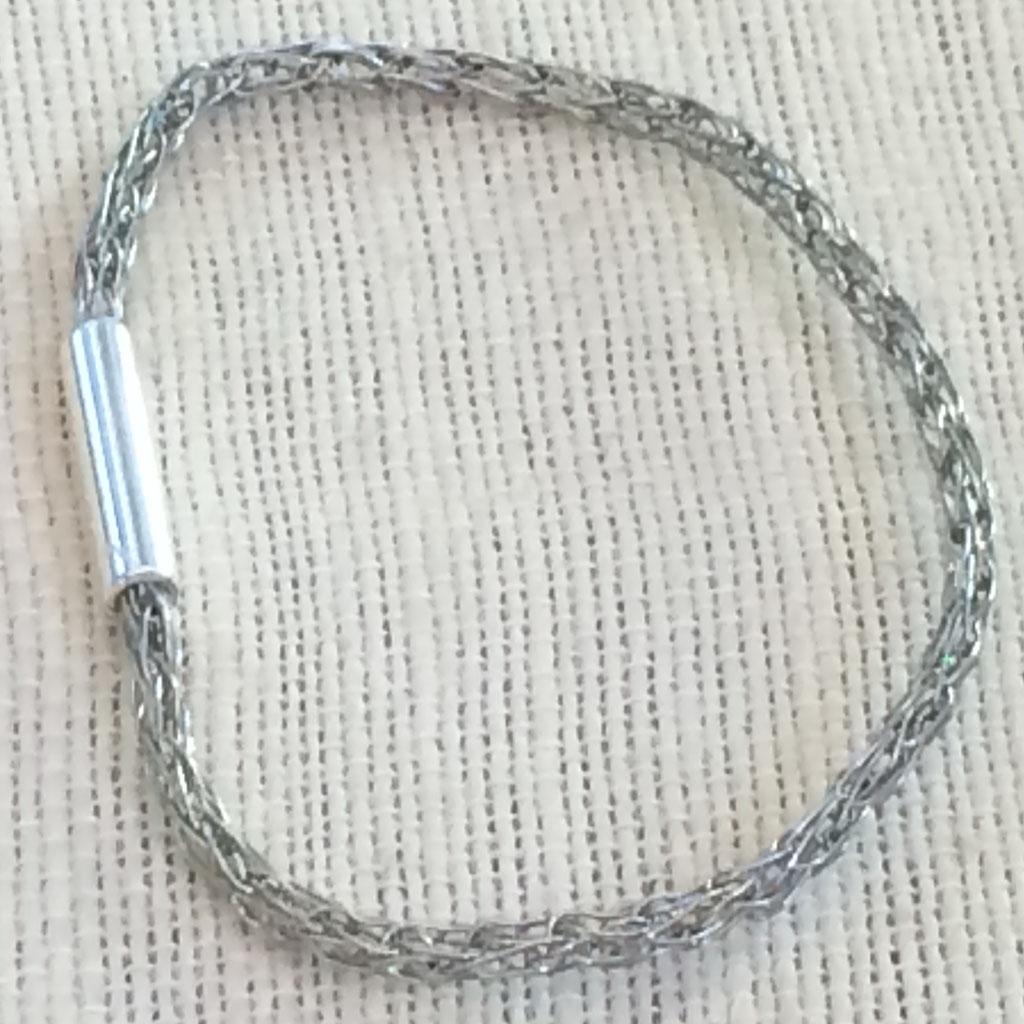 Handmade silver plated bracelets for beads with holes of 4mm or larger, To open, just slowly pull apart and to close, push the clasp ends together til you hear a little pop. To place a bead on the bracelet, just place it on the small end of the open clasp. Keep in mind that when you add beads it will take away from the diameter so add an inch to the size you typically wear in inches. Keep watching for more bead colors to come!