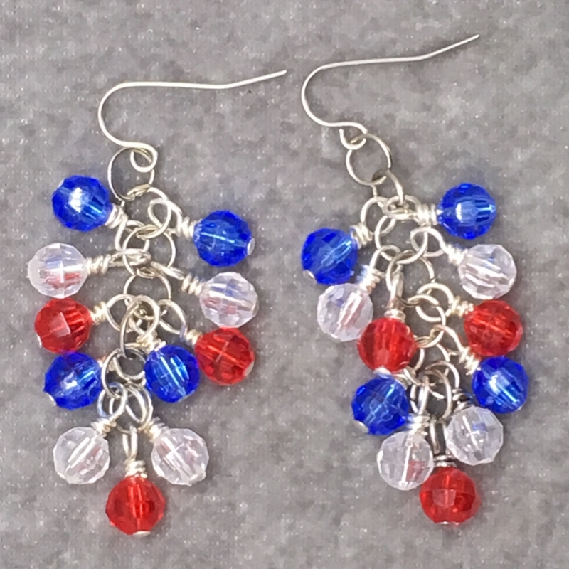 Cluster earrings made with 6mm red, clear, and blue transparent acrylic beads. Perfect to wear on the American patriotic holidays! More design options coming for these earrings so keep watching