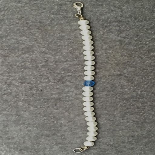 Made with 6mm swarovski glass pearls and one light blue acrylic bead in the center. This bracelet is perfect for the bride who just wants the tiniest touch of blue with the elegance of pearls or for anyone really. It can be worn with a floor length gown or your plain old blue jeans. Fits the tradition of something old, something new, something borrowed, something blue that every bride follows.