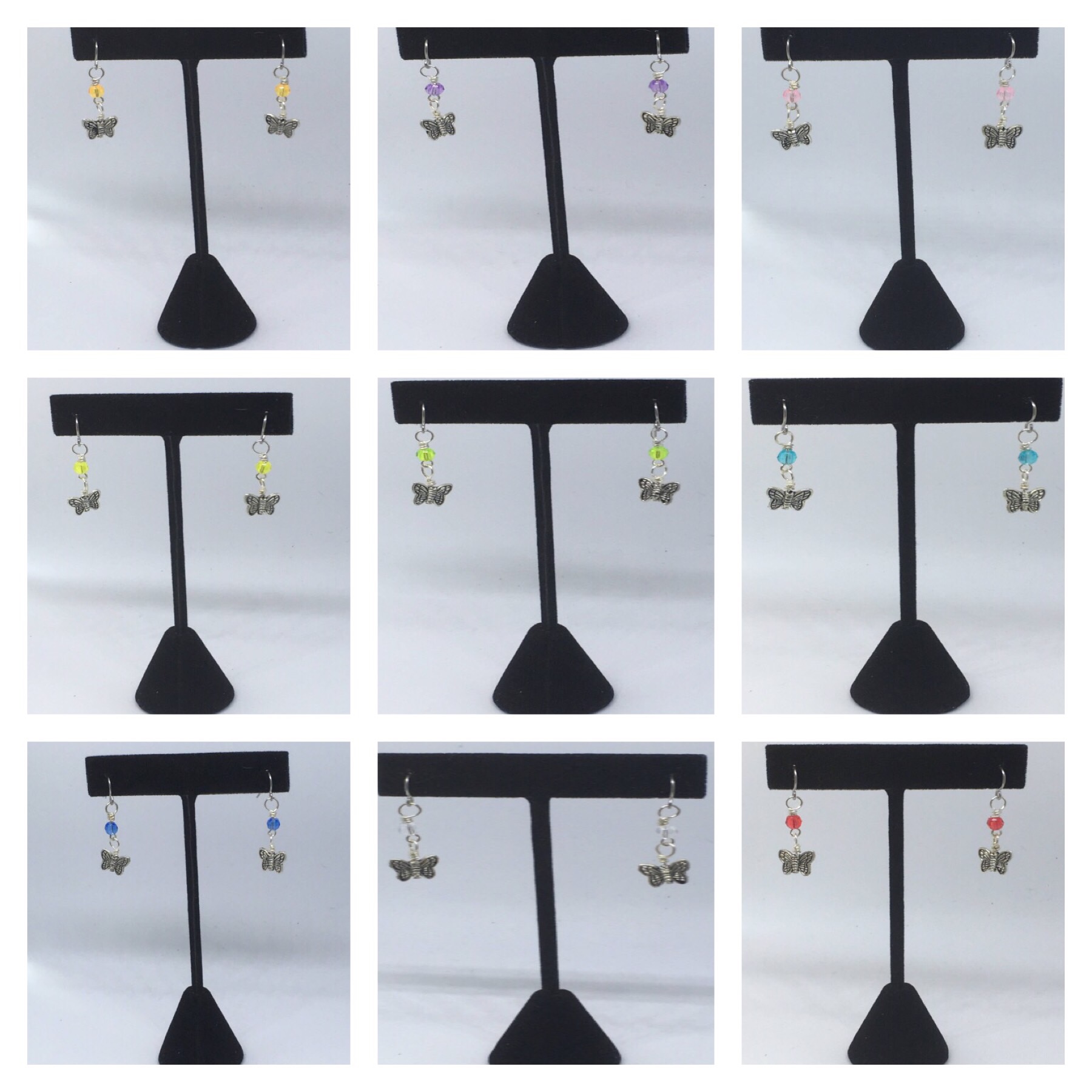 Product Description Petite butterfly earrings made with 10x8mm pewter butterflies and 4mm beads on your choice of ear post