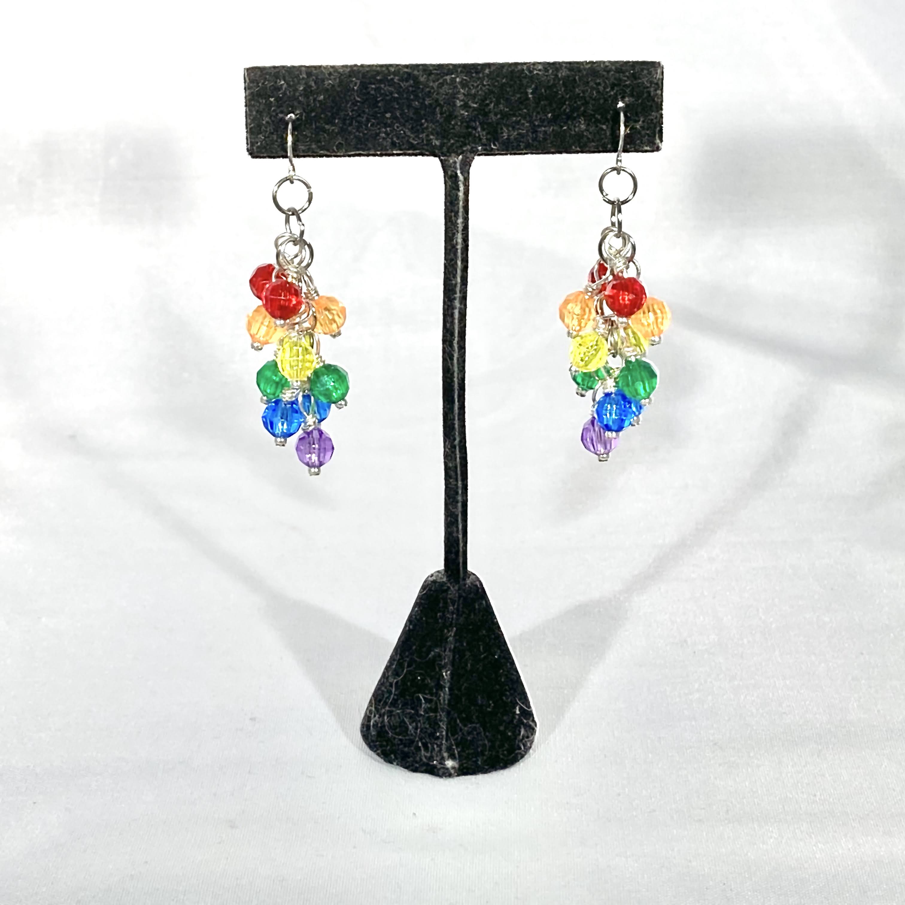 Earrings made with 6mm acrylic faceted round beads and jump rings that hang on your choice of post, Approx 2 inches long