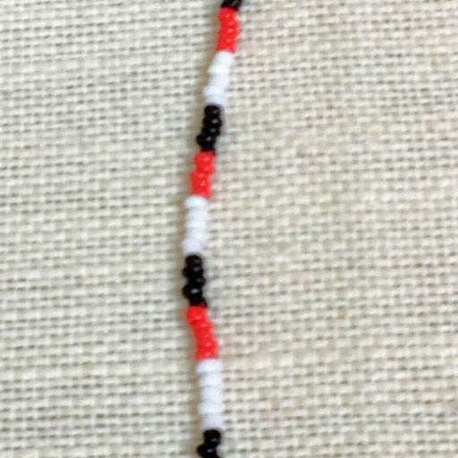 Product Description A bracelet made with red, white, and black size 11/0 seed beads to represent several different team's colors.
