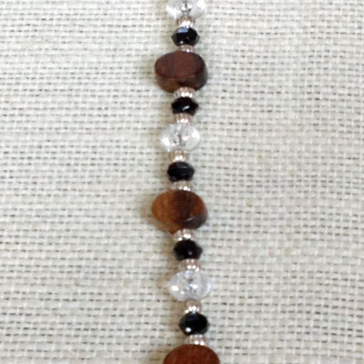 Product Description Made with 10mm round wooden discs, 4mm acrylic black beads, 6mm glass orb beads, and silver spacer beads